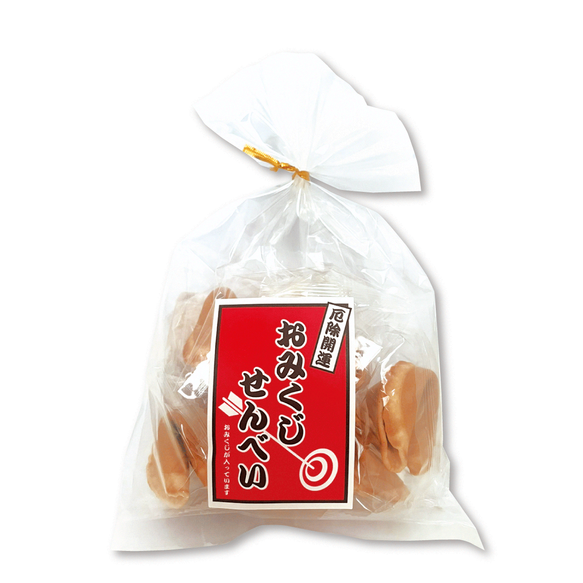 小麦粉、砂糖、卵を使い、ひねった瓦煎餅の中におみくじが入っています。ほんのり味噌味が甘さ控えめで、パリパリの軽い食感です。個包装になりました。