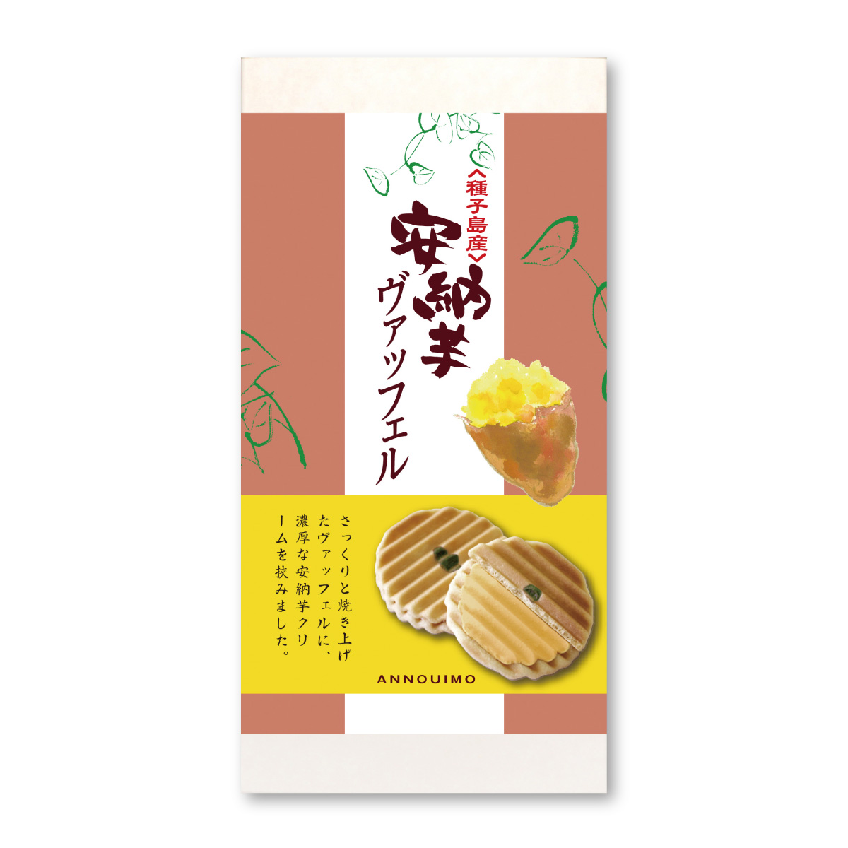 秋を感じるやさしい甘さの安納芋クリームを、バターを使ったさっくり焼き上げたヴァッフェル生地でサンドした洋風焼き菓子です。