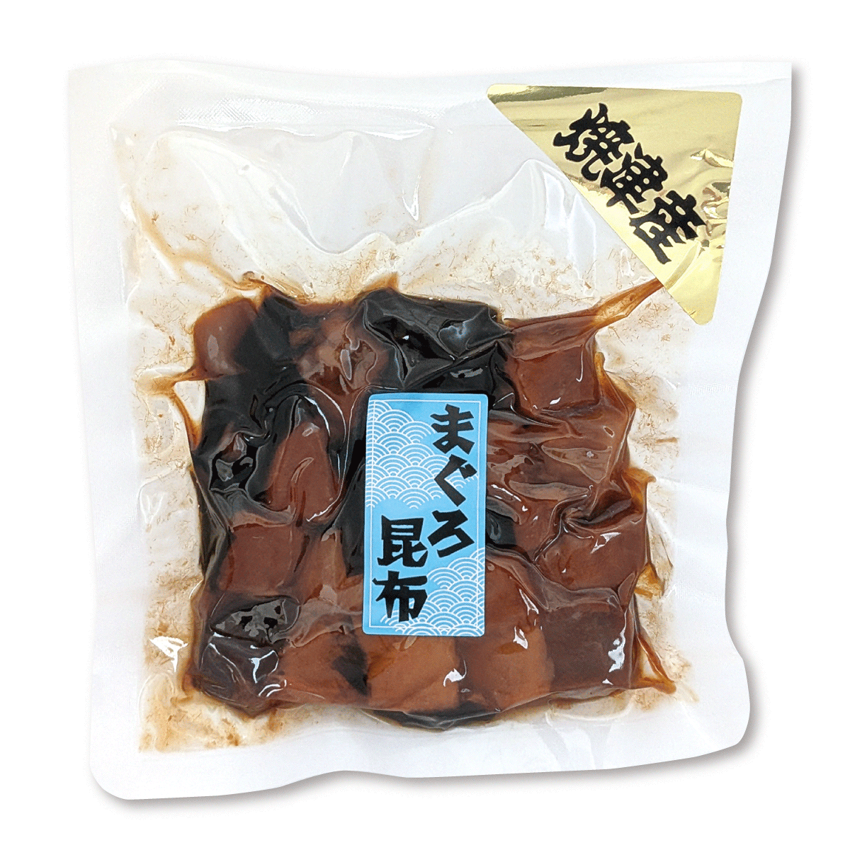 焼津市産めばちまぐろと北海道産昆布使用。まぐろの旨みと昆布のやさしい味わいがご飯によく合う佃煮です。