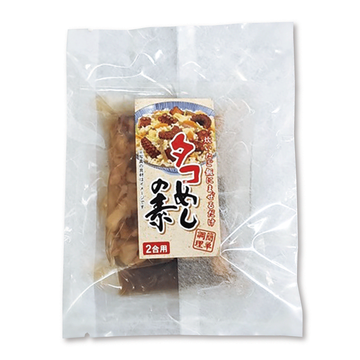 炊いたご飯に混ぜ込むだけ。たこの旨みが広がる混ぜ込みごはんの素です。炊き込みご飯としてもご利用いただけます。
