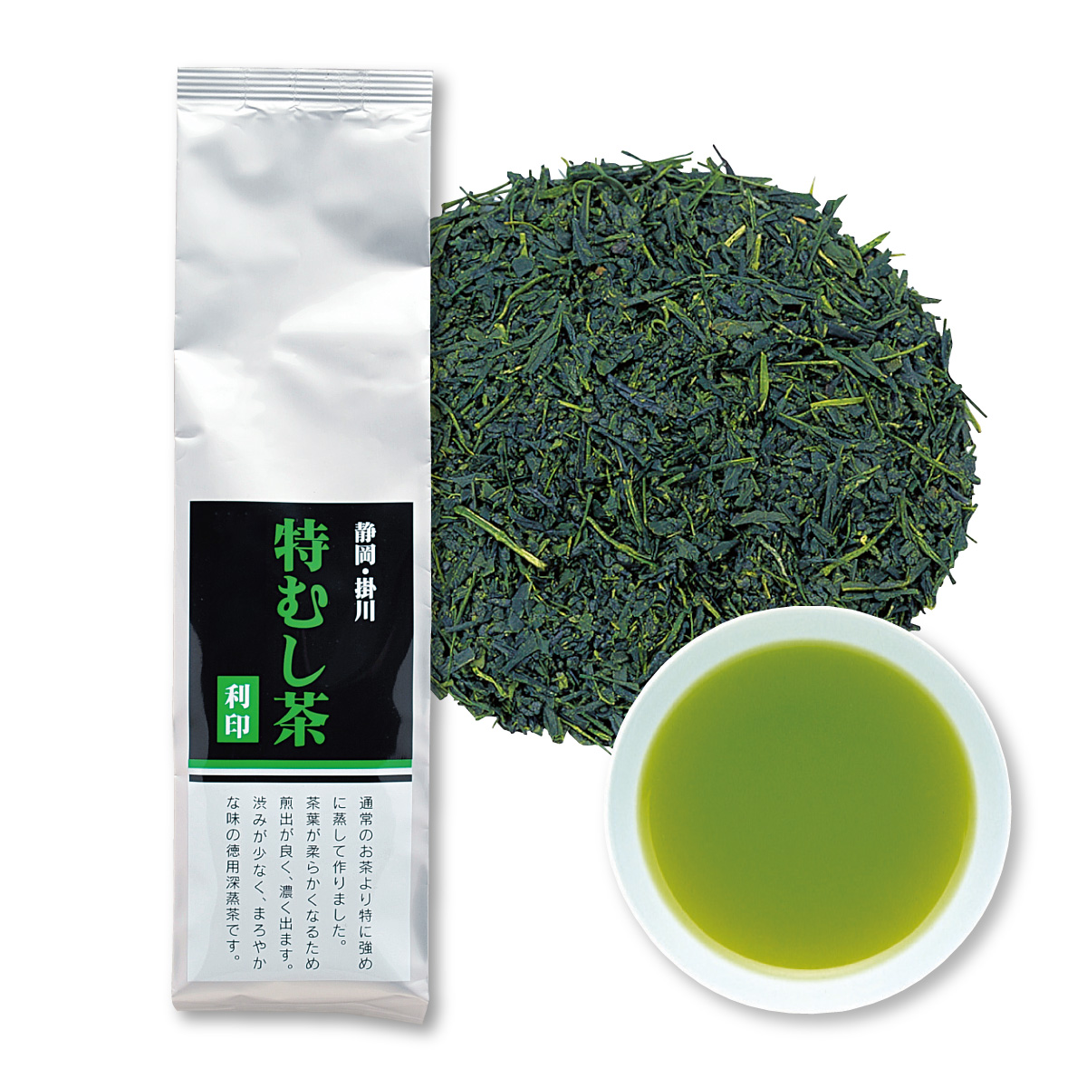 通常のものより特に強めに蒸して作りました。選出が良く、かなり濃く出ますので、濃い目のお茶が好きな方に喜ばれています。深く蒸してあるため、渋みは少なく、まさにお徳用深蒸し茶です。