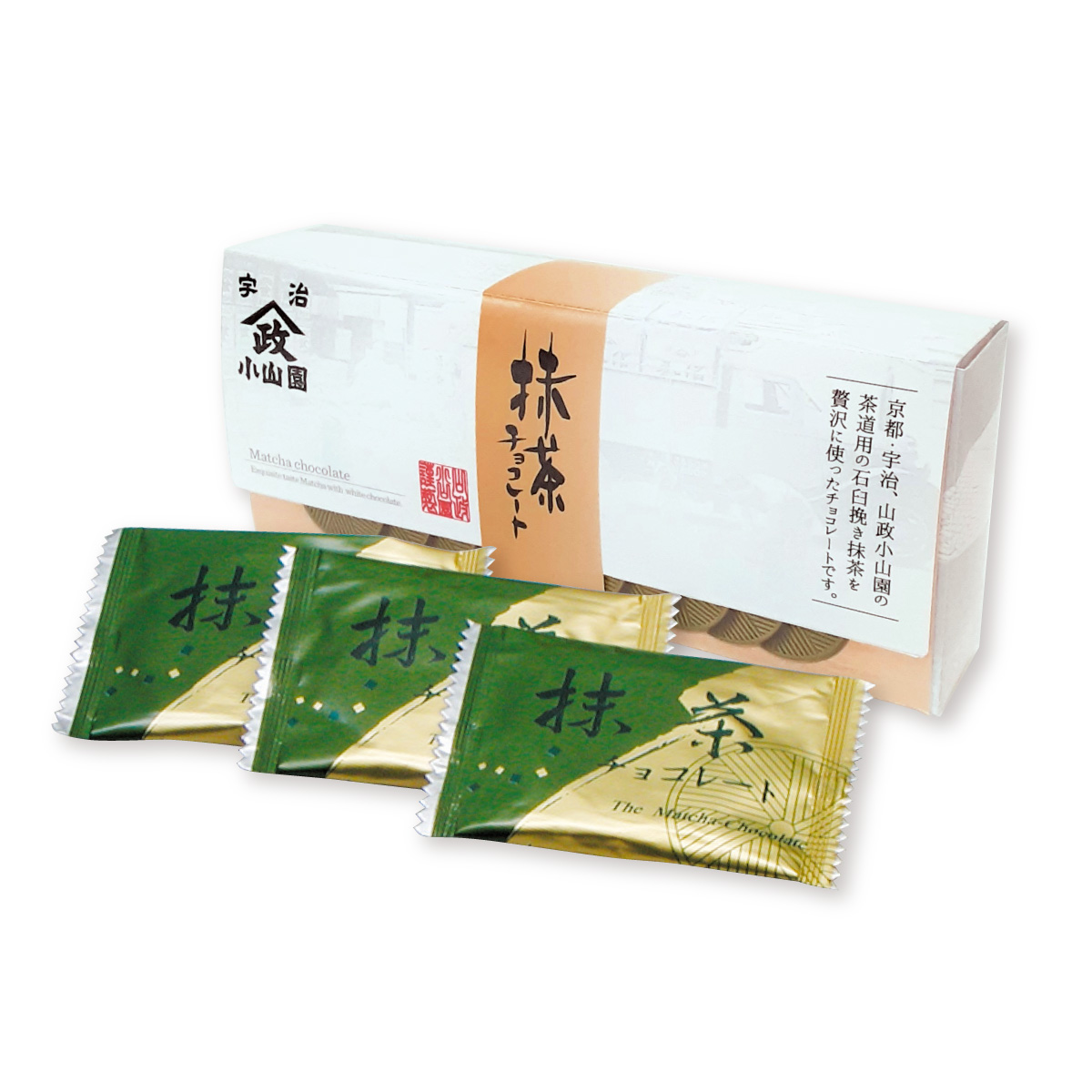 京都・宇治の純良抹茶と厳選ホワイトチョコを贅沢ブレンド。抹茶のほろ苦さとまろやかなミルク風味のチョコが、お口の中で見事に溶け合う和洋折衷の味わいです。
