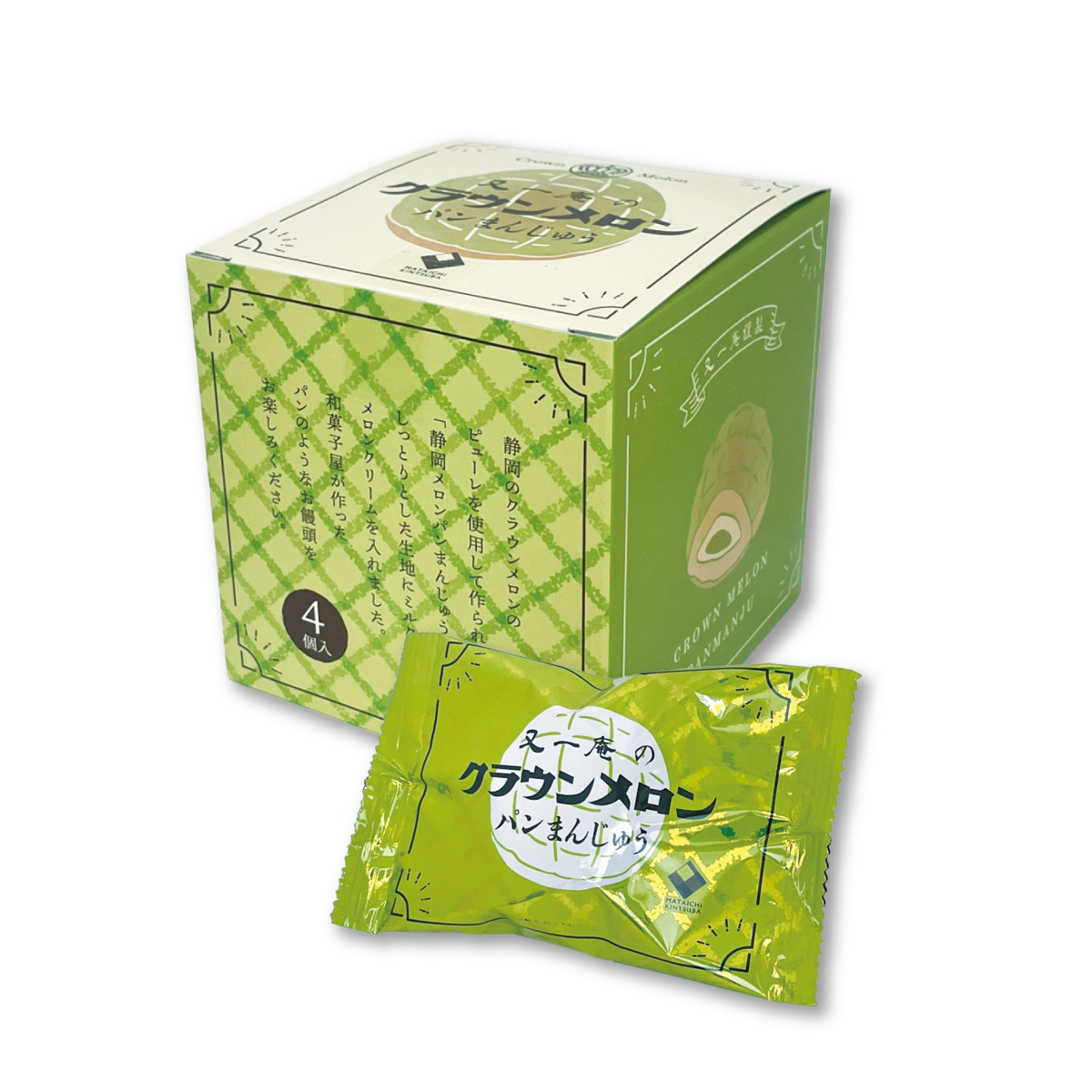 静岡のクラウンメロンのピューレを使ったしっとりとした生地に、ミルク餡とメロンクリームを包み込みました。和菓子屋が仕上げたパンのようなお饅頭です。